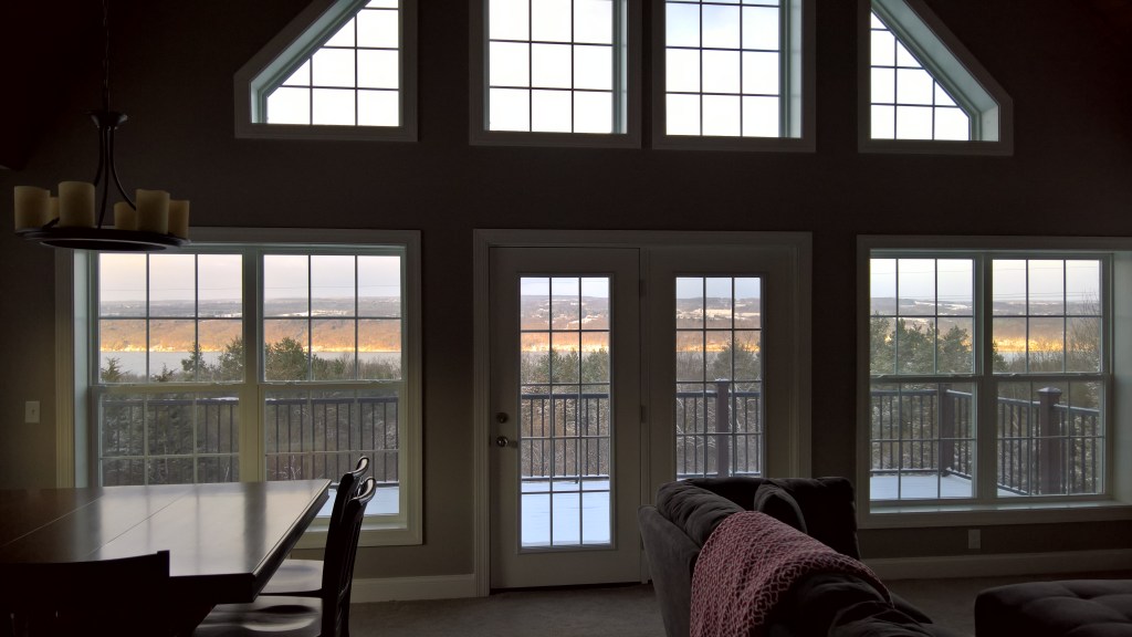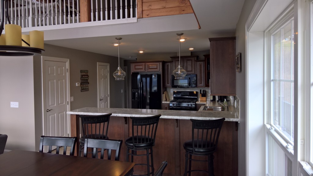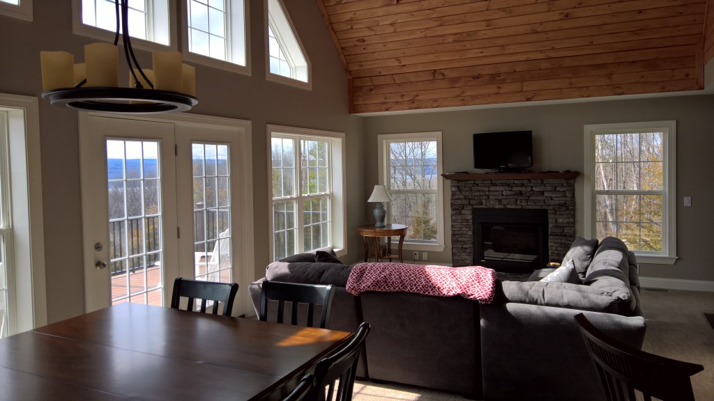 Great room and view of lakeSunset from the deckView of the large deckMain bath off of 1st floor Main SuiteMain bedroomMudroom and laundryGuest room main floorGuest room main floorKitchen and eat at barKitchen and eat at barLake view from Great RoomGreat Room from loftGreat Room from loftView of loftBed in loftUpstairs master suiteUpstairs suiteUpstairs bathView from deck at the entry doorShared dock for swimming, fishing, relaxingEntering driveway from Cherry LandingGreat roomView of homeSunset from the deckSunset view heading down the road to the Ort ResortFire pit area